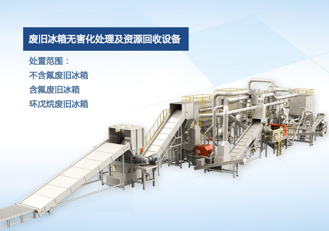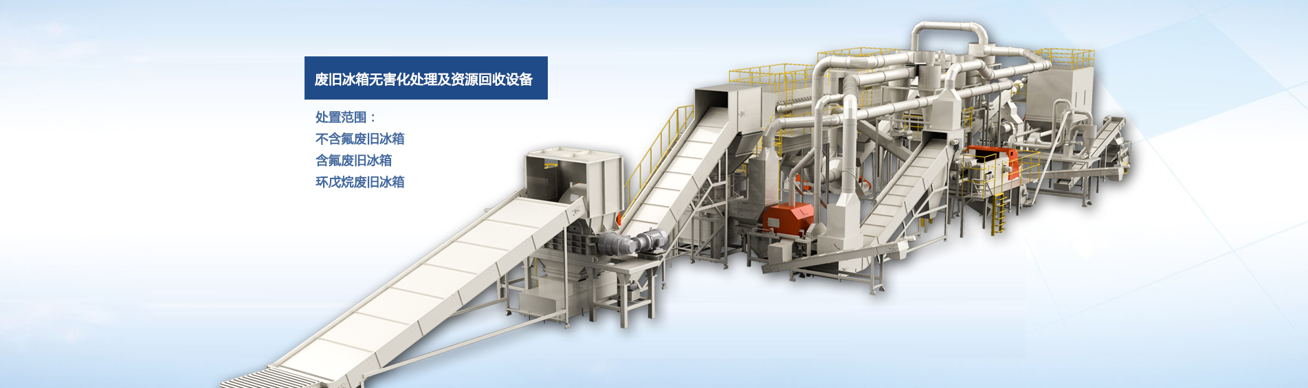 公司自主研發(fā)的廢舊冰箱無害化處理及資源回收技術(shù)及設(shè)備, 獨具 “雙軸撕碎機+立式破碎機+大風(fēng)量稀釋環(huán)戊烷氣體”的專利組合設(shè)計, 主要用于對廢舊冰箱中的各種原材料進行分離、 回收和利用, 具有自主知識產(chǎn)權(quán), 經(jīng)國家工業(yè)和信息化部科技成果鑒定為 “填補國內(nèi)空白, 達到國際先進水平” 。